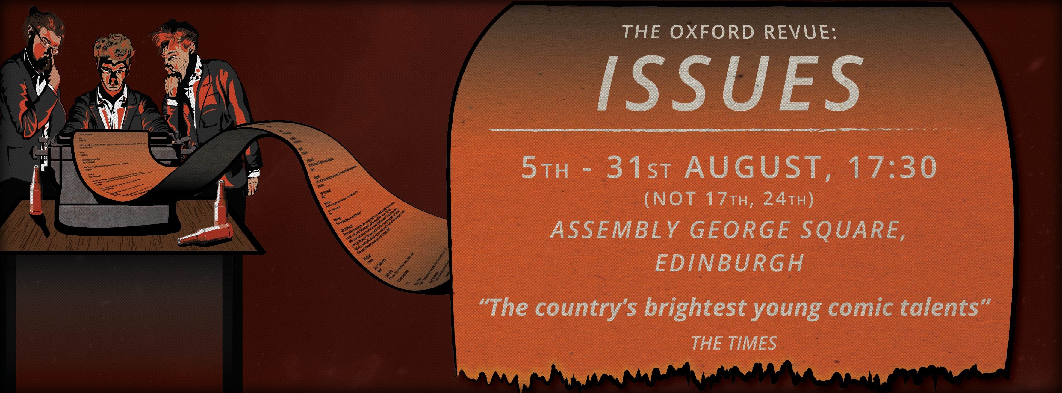 Things are getting exciting at the 2015 Edinburgh Festival Fringe for the team of the Oxford Revue’s Issues, following their first sell-out show at the 170+ seat Assembly Studio Two in George Square last night. The sketch show, representing the Revue’s 51st appearance at the Fringe, draws on material old and new to carry its audience through the failings of hapless politicians to the musical exploits of football hooligans to a bizarre attempt to refresh the national anthem.